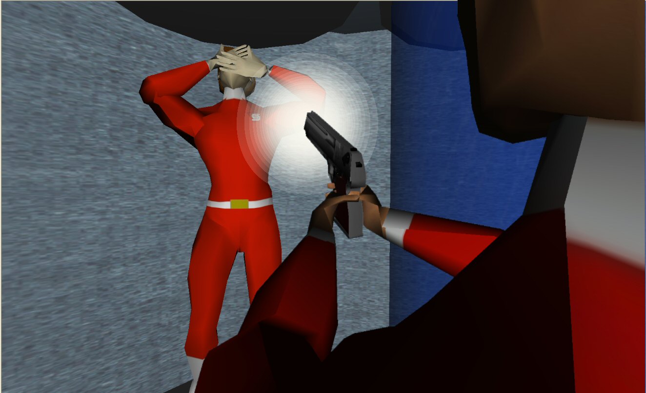 The powerful blast from your GH3 completely shatters the glass of the sleeper tube and blows a sizeable hole in the man's face.